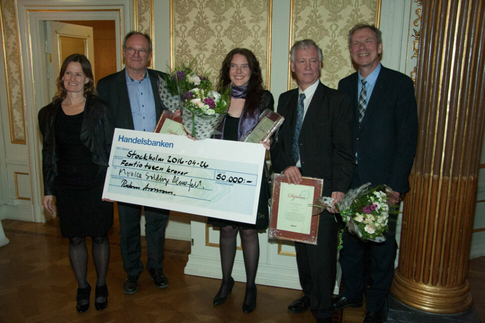 Projektledaren Monica Soldinger Almefelt, Swerock, fick ta emot en check på 50 000 kronor när Svenska Byggbranschens Utvecklingsfond (SBUF) delade ut priset Årets Innovation 2015. Projektet har resulterat i en handbok, ”Inspiration till att skapa bra natur i täkter”, som visar hur bergtäkter kan skapa bra förutsättningar för biologisk mångfald.