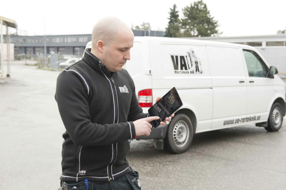 Allt fler VVS-företag använder mobil teknik, så också VA Rörteknik i Järfälla. Alla medarbetare är utrustade med läsplattor. Nu kan därför VVS-montören Daniel Jansson få tillgång till snabb omvärldsinformation genom VVS-Forums nya app. Den ger honom och alla andra tillgång till vårt dagliga nyhetsflöde på webben.