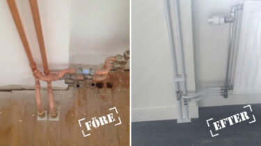 Det var åtta grader varmt i lägenheten i vintras och enda värmekällan var en oljepanna som var direkt olämplig för pelletseldning, enligt Anders Olofsson,Bil och VVS i Dalhem.