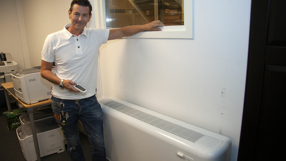 En fläktkonvektor förses med en magnet som strömsätts och värmefaktorn blir hög – kylentreprenören Jonas Hagman ska sätta en ny produkt på marknaden.