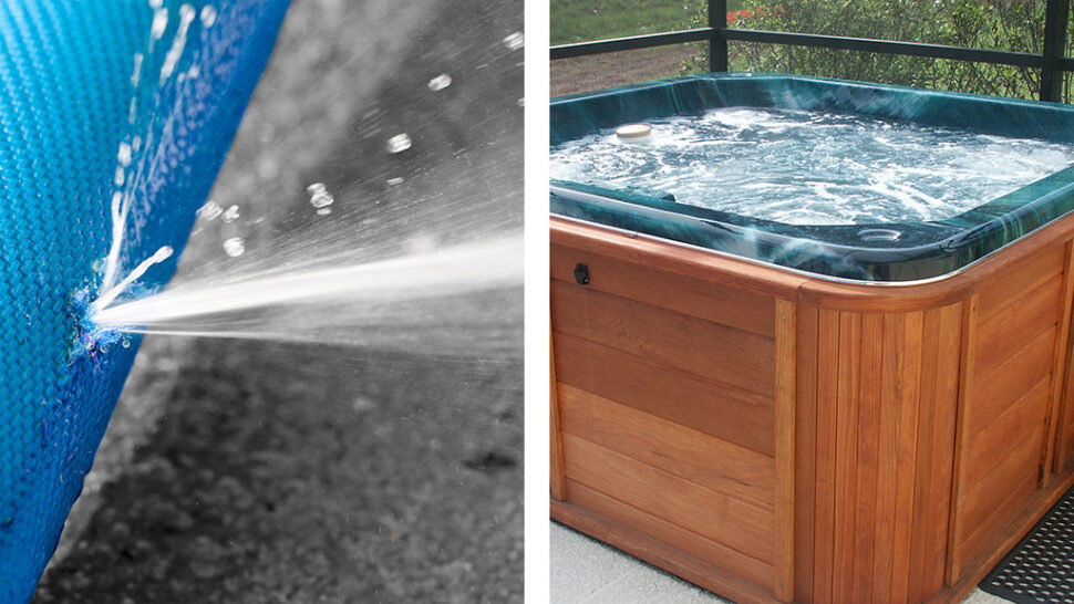 Först började badet stänga av sig självt, sen försvann trycket i jetsen/vattenstrålarna och därefter läckte 1 500 liter vatten ut. Spabadet blev inte vad villaägaren tänkt sig.