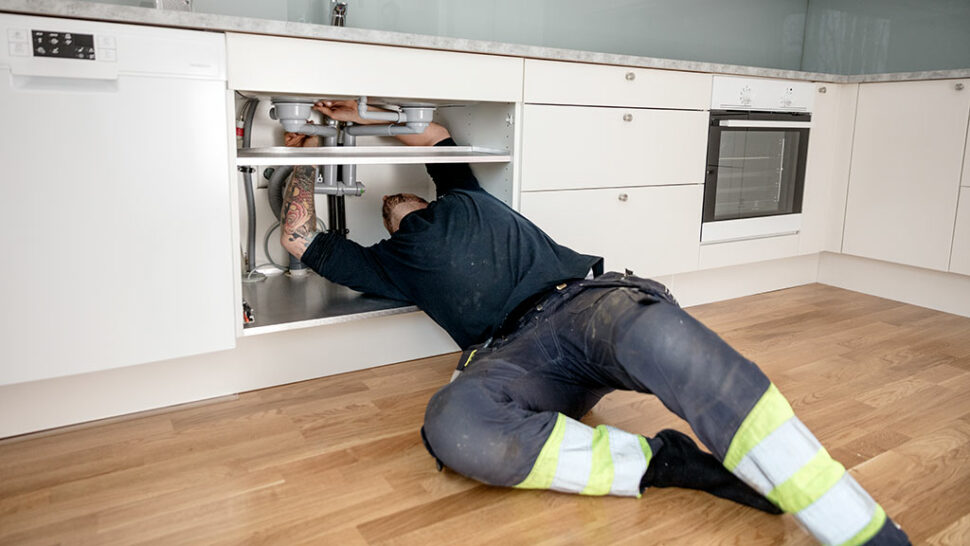 Montage i diskbänksskåpen hör till arbetena med den obekvämaste arbetsställningen. Vi hängde med VVS-montören Jimmy Carlsson på ett slitigt uppdrag.
