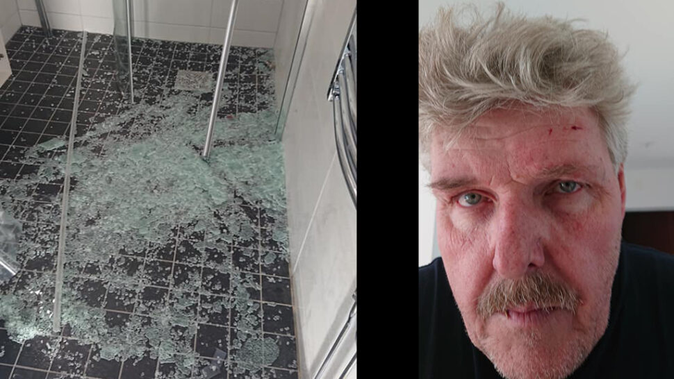 ”Fredagsmys. Nu går jag hem. Trevlig helg på er,” summerade han händelsen i sin statusuppdatering i Facebookgruppen Rörmokare utan gränser, tillsammans med en bild på glassplittret som täckte badrumsgolvet.