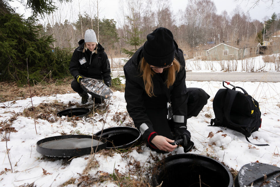 ”Om 500 meter, sväng höger för att fortsätta på Stavsnäsvägen”. Den välbekanta GPS-rösten visar vägen den här vårdagen. Värmdö kommuns miljöinspektörer Ida Nordh och Anita Kirsch sitter i en bil som rullar över Fågelbrolandet, en av skärgårdskommunens över 10 000 öar.