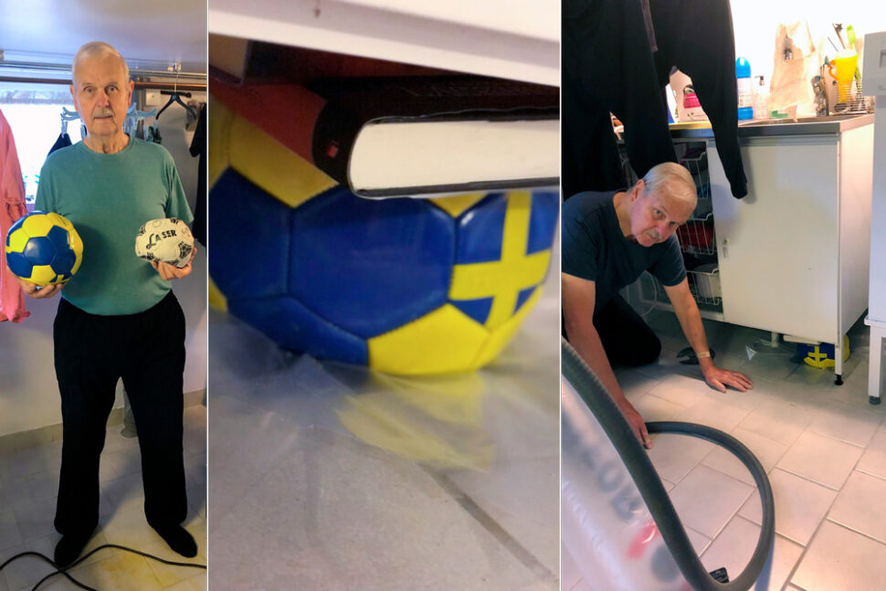 – Jag blev inspirerad av fotbollsdamernas framgångar. Om inte det funkar med fotbollen och det kommer in vatten får jag sätta i sugslangen och börja pumpa ut vattnet, säger Jan Mattiasson som visade upp sin lösning i ett nyhetsinslag i SVT.
