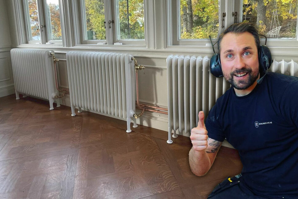 – Det var nya värmestammar i hela huset. Det inkluderade installation av de fina Lenhovdaradiatorerna och gamla fina slottsvred. Dessutom rördragning på gammalt vis, så att det ska synas, med kopparrör.