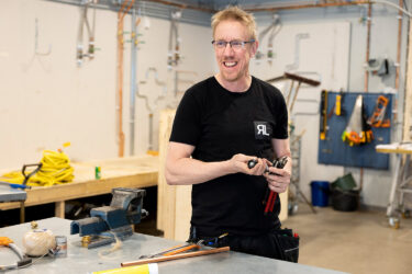 – Ibland kryper hela jag in under en diskbänk, jag brukar få höra: ”Men hur jobbar du?”, haha. Men sedan är jag också skyddsombud och tycker att om man jobbar till exempel i en krypgrund är det viktigt att ha en kollega på plats eller telefonkontakt i fall något skulle hända. Det finns mycket regler när det kommer till krypgrunder som många inte följer.