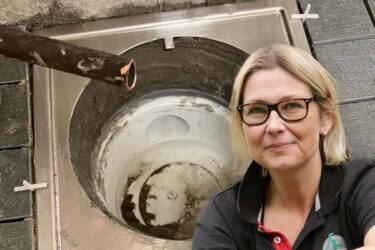– Jag är rätt nojig av mig så jag kollar lutningen om och om igen vid varje anslutning. Det är också det första jag gör på morgonen och det sista jag gör innan jag går hem. Jag kan ha gått halvvägs uppför en trappa och behövt springa ner igen för att kolla att jag har gjort rätt. Jag vill ju kunna sova om nätterna, ha ha.