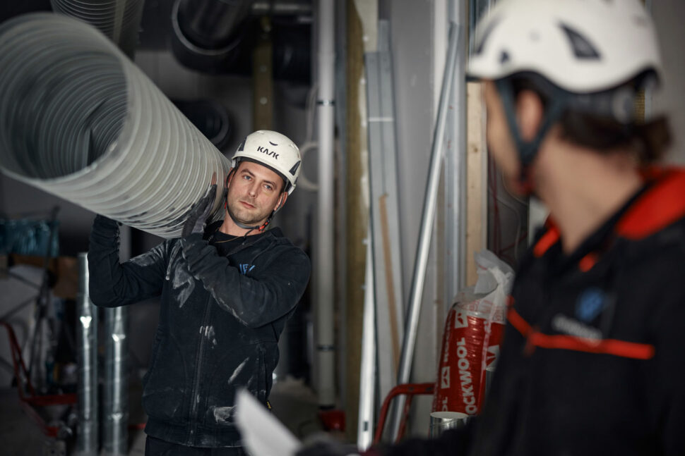 – Är vi inne och jobbar får de gärna ha radio eller eller stationär högtalare med sig men inte lurar i öronen. Även om vi är ensamma som team i ett utrymme så jobbar vi fortfarande tillsammans, säger han.