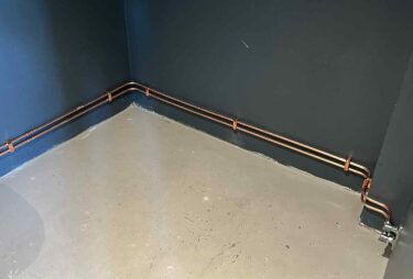 ”Mina chefer ville ha en industriell känsla i våtrummet därför blev det hårda kopparrör.”
