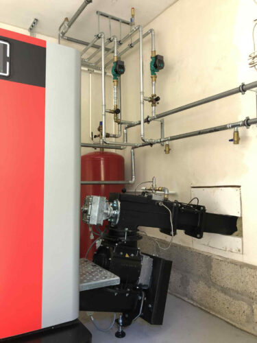 Nu kompletterar han alltså med en flispanna och i samband med det bygger han samtidigt ihop gårdens två system, ett för verkstaden och en för lägenheten och huset, i en vattenburen kulvert. Värmen produceras i flispannan som går till separata beredare i varje del av gården.