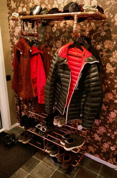 ”Frugan beställer och jag bygger”, skriver Jonas Sundqvist i Rörmokare utan gränser och visar upp denna hallösning monterad mellan yttervägg och en garderob där vi också kan hänga kläder och förvara ytterskor.