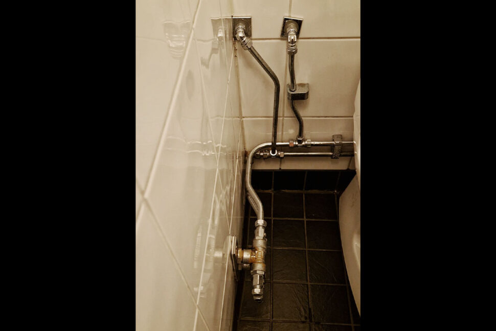 Här har det byggts om i lokalen och tillkommit tappställe på andra sidan väggen, gissar Björn Wettervik som bjuder på den här bilden i Rörmokare utan gränser. ”Det händer MYCKET bra och dåligt på den korta sträckan”, skriver han.
