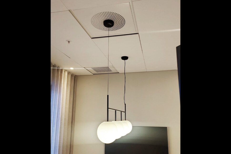 ”Där skulle den hänga ja.” Christian Ekblad visar upp en väl vald plats för denna armatur i Ventilationare utan gränser. ”Så går det när el inte vill prata med vent, eller tvärtom”, konstaterar en kommentar i tråden.