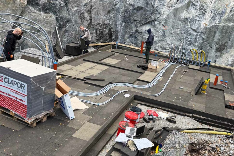 Under ett av Ängby Rörs senaste projekt med ett nybygge ville kunden ha cellglas i bottenplattan. Ett material som gör att det går att använda mindre betong – men som är en utmaning för rördragningarna