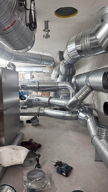 Det svåra med uppdraget, berättar han, är framförallt att det är både till- och frånluft på samma kanaler. Som dessutom ska bli rumsstyrda från varje enskilt rum som ska ha rätt luftfuktighet.