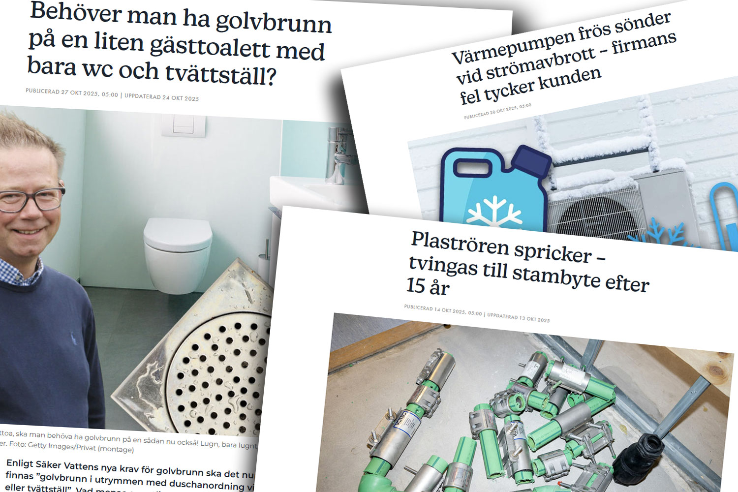 Behöver man golvbrunn på en liten gästtoalett? Varför spricker plaströren i nya hus? Var det firmans fel att värmepumpen frös sönder? Det här är artiklarna som lästes mest under oktober.