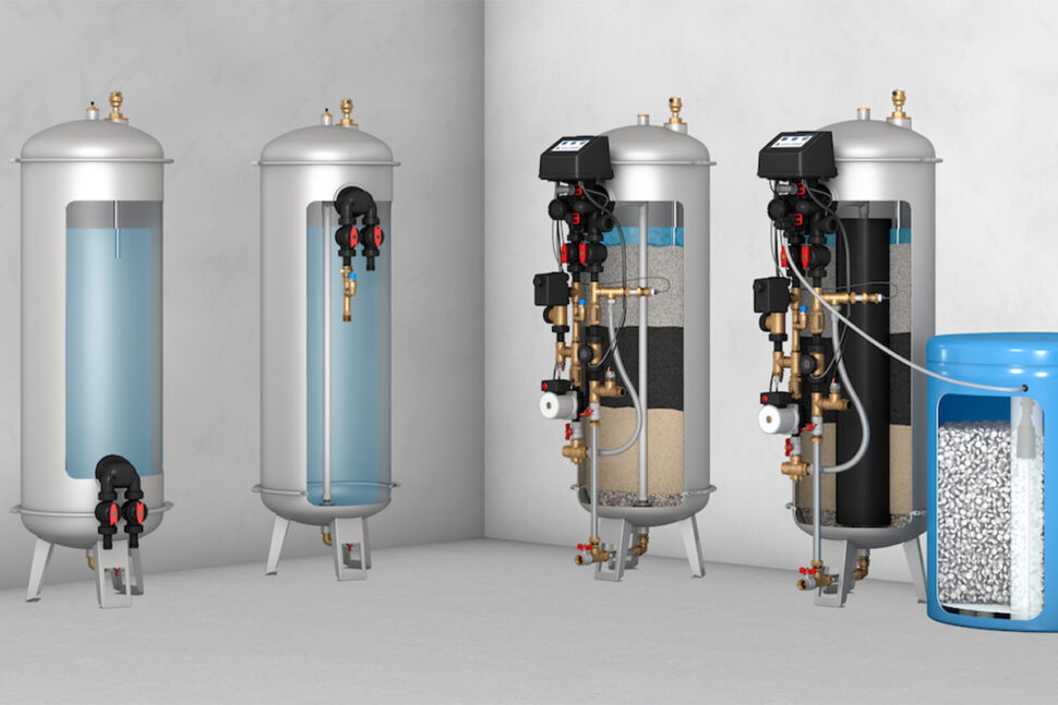 Ett traditionellt trycktankssystem består ofta av flera separata enheter – som trycktank och olika filter – placerade bredvid varandra. Det måste dessutom anpassas manuellt om förutsättningarna ändras. Varje del kräver egen styrning, vilket tar både plats och gör installationen mer komplex. Dessutom kan komponenterna påverka varandra negativt och göra systemet mindre effektivt.