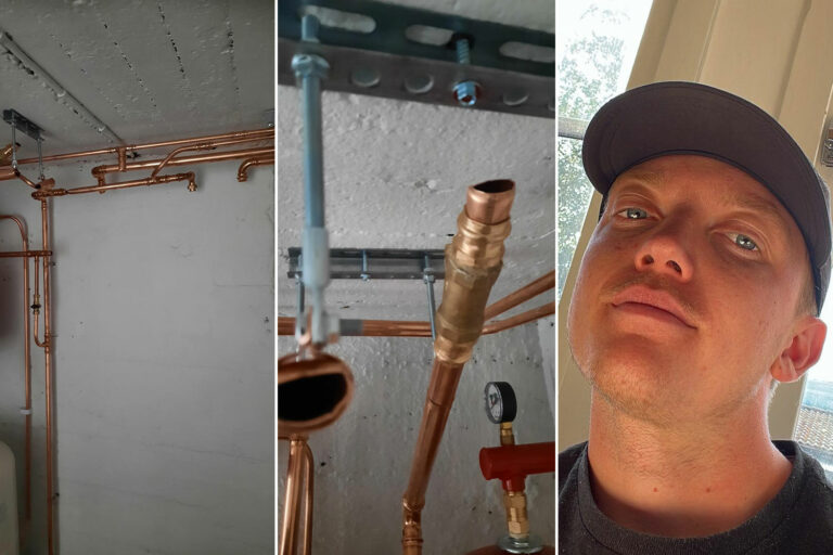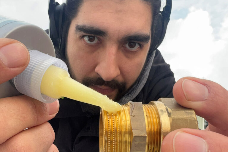 Han kör ofta på lin och snöre, men tycker att en annan metod för att täta rörkopplingar är bäst ibland. En vattendelare i branschen, kallar han det.