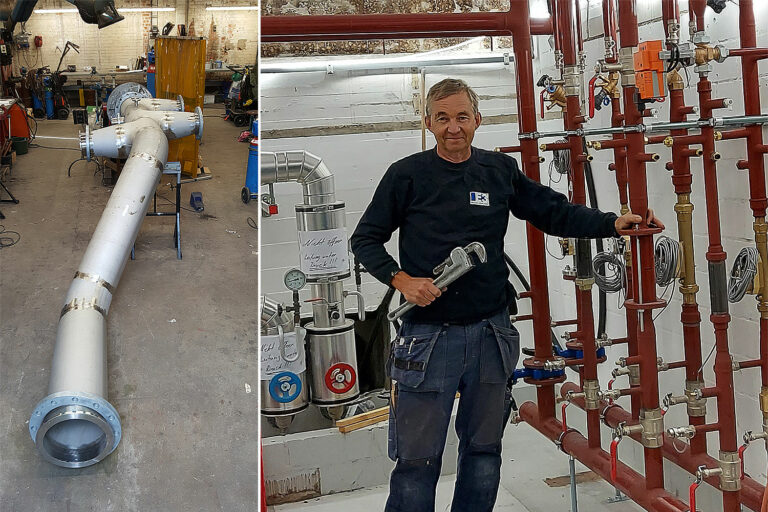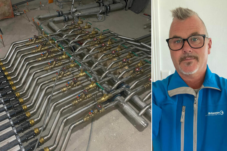 Klanderfritt utförda matarledningar och borrhål i symmetriska rader ger även förhärdade VVS:are darr på underläppen. “Sjukt roligt” säger chefen som leder arbetet i en K-märkt fastighet på Östermalm.