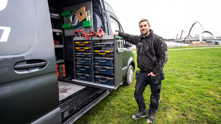 VVS-montören Andreas Mårtensson spar runt 30 minuter om dagen på sin specialinredning i skåpbilen. Så här såg hans kravlista ut.