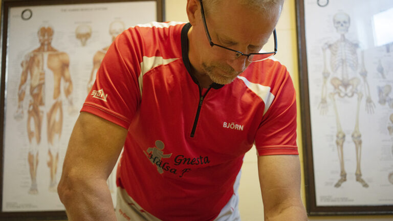 Efter en svår arbetsplatsolycka tvingades Björn Jansson inse att han aldrig skulle kunna jobba på bygge igen. Nu använder han sin tid till att hjälpa tidigare kolleger med deras smärtande kroppar.