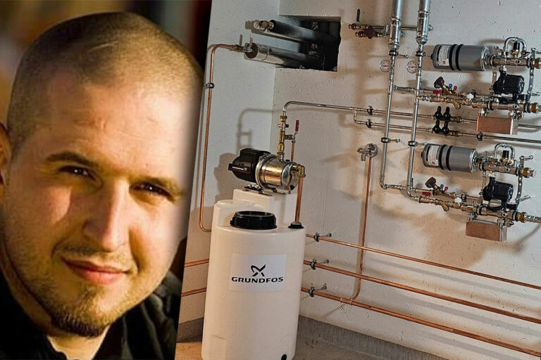 Han byggde värmesystemet till ett köpcentrum och fick rycka in med kapen när utrymmet blev för trångt. Resultatet – lite rörporr, faktiskt, både enligt montören själv och reaktionerna.