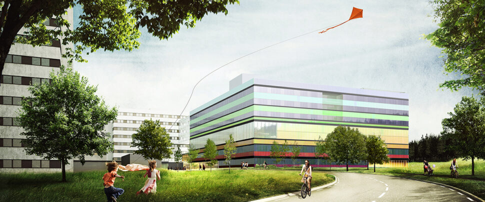 Den nya byggnaden på totalt cirka 33 000 m² ska innehålla lokaler för rehabilitering, operation, intensivvård, vårdavdelningar och administration. Målet är att nå Miljöbyggnad Guld. Inflyttning sker successivt under 2018–2020.
